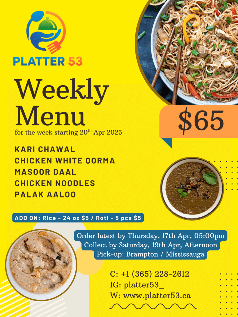 With Platter53’s weekly meal service, you can enjoy a week of delicious, nutritious meals without the hassle of planning or preparation. Every week, we create a carefully curated menu designed to offer variety and balance, ensuring each meal is made with fresh, locally-sourced ingredients that nourish both body and taste buds. Whether you’re craving something hearty or light, our meals are expertly crafted to suit your preferences and keep you satisfied throughout the week. Ready to heat and eat, Platter53 makes it easy to enjoy gourmet meals whenever you need them. Let us handle the cooking, so you can focus on what matters most.